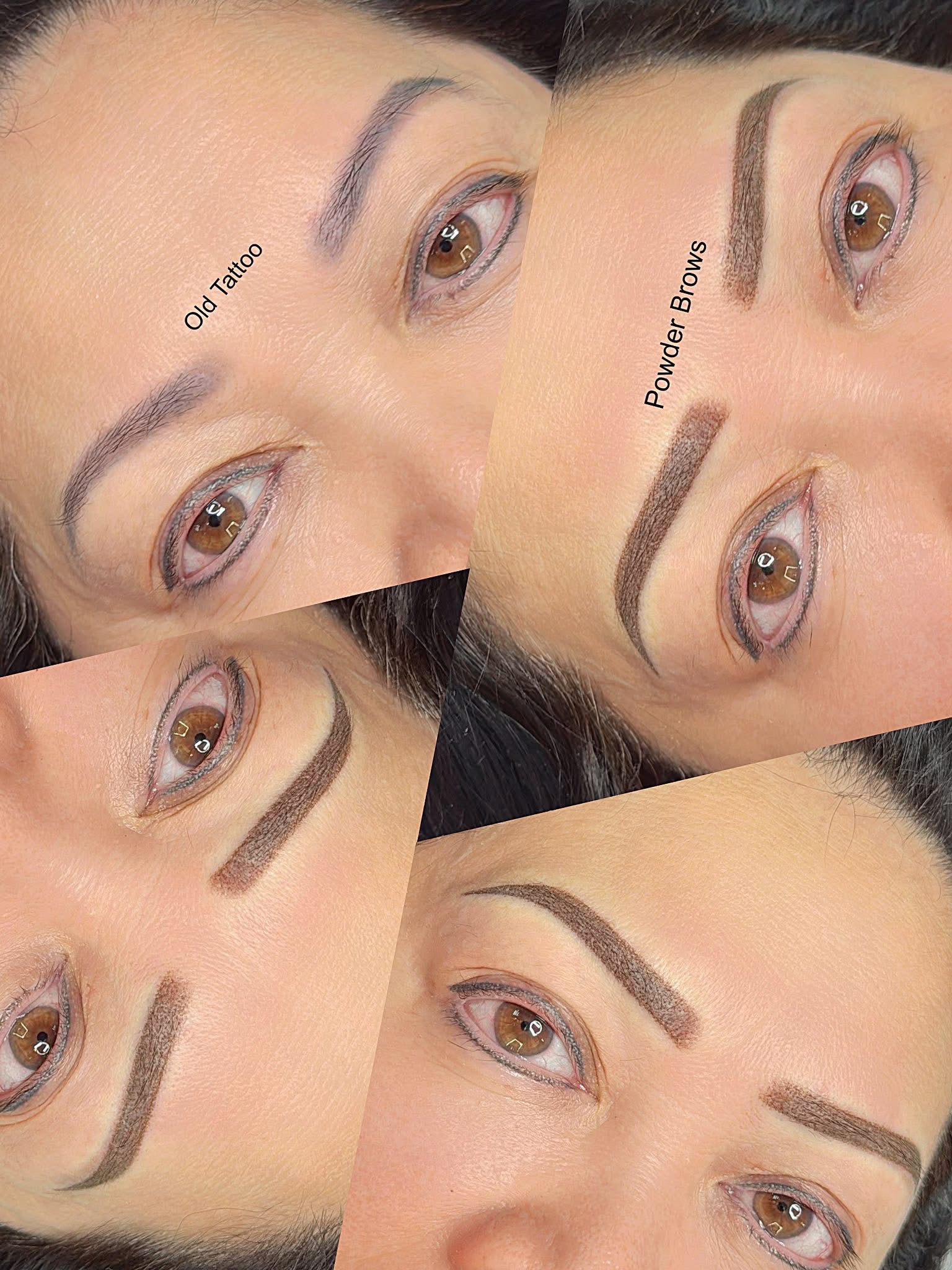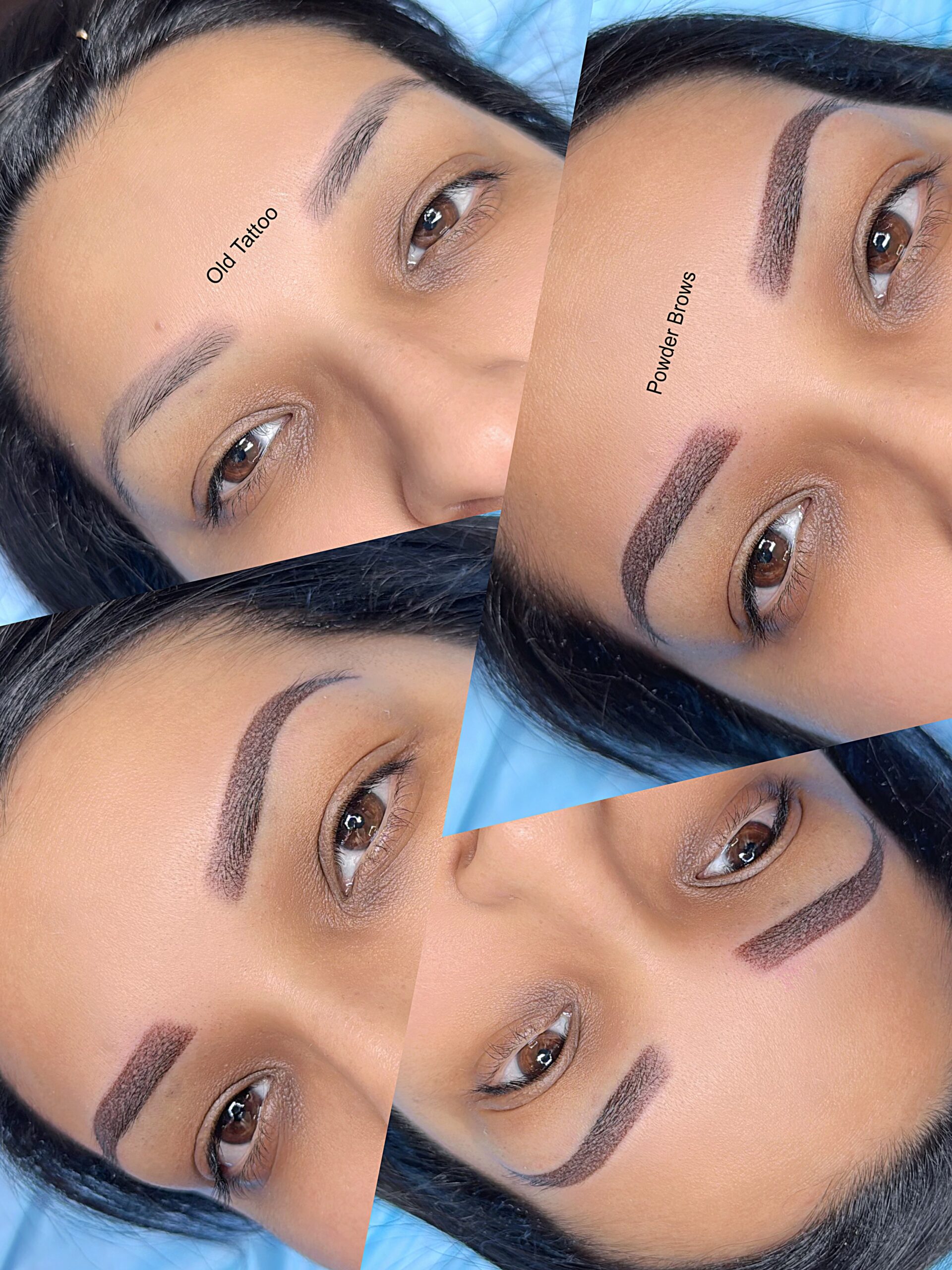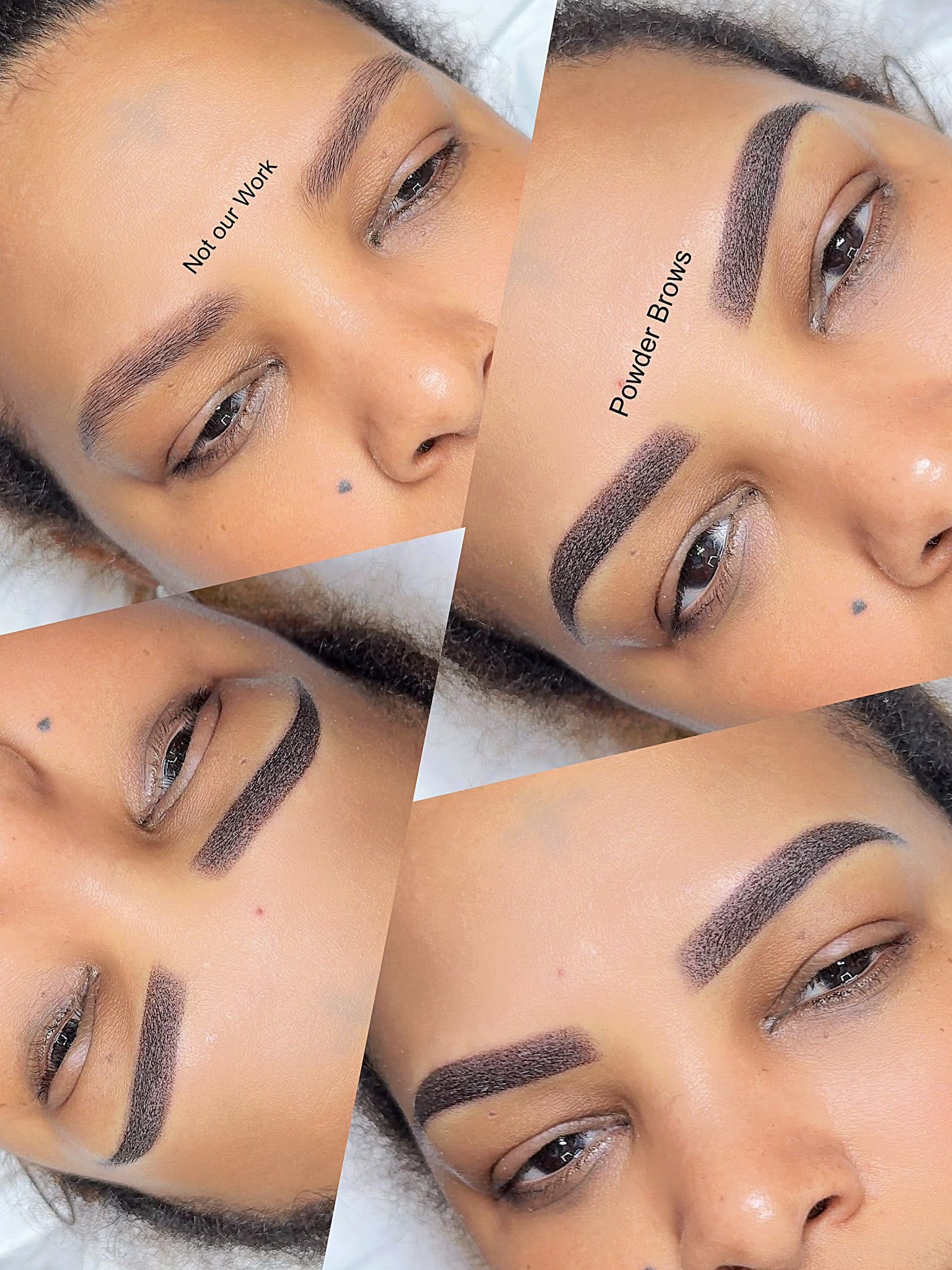 Powder brows don’t rely on crisp hair strokes, so they’re better for covering previous work. - Heals beautifully
